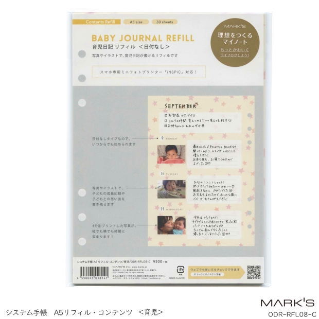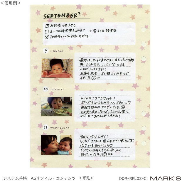 システム手帳リフィル A5 育児日記 おしゃれなリフィル MARK'S