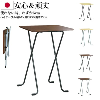 テレワーク ハイタイプ デスク カウンター テーブル 折り畳み カウンターテーブル 頑丈&安心の日本製 フォールディングテーブル 【幅60×奥行45×高さ85cm】 カフェテーブル ナチュラル ダークブラウン 机 リビング カフェ 在宅勤務 新生活 イエナカ